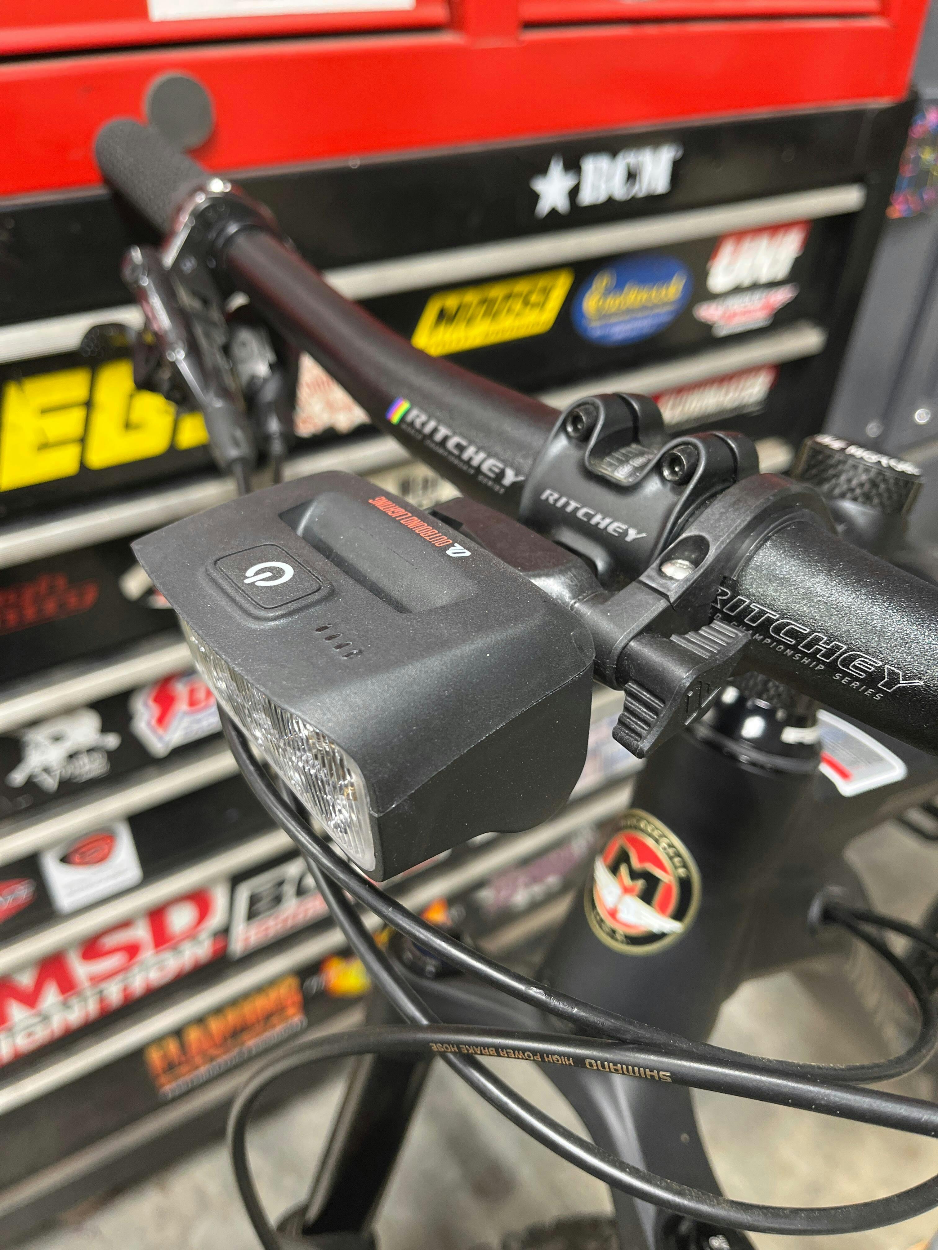The astonishing Trail Evo is the zenith of self-contained, wireless mountain bike lights. Soon to be your favorite part of your bike.
