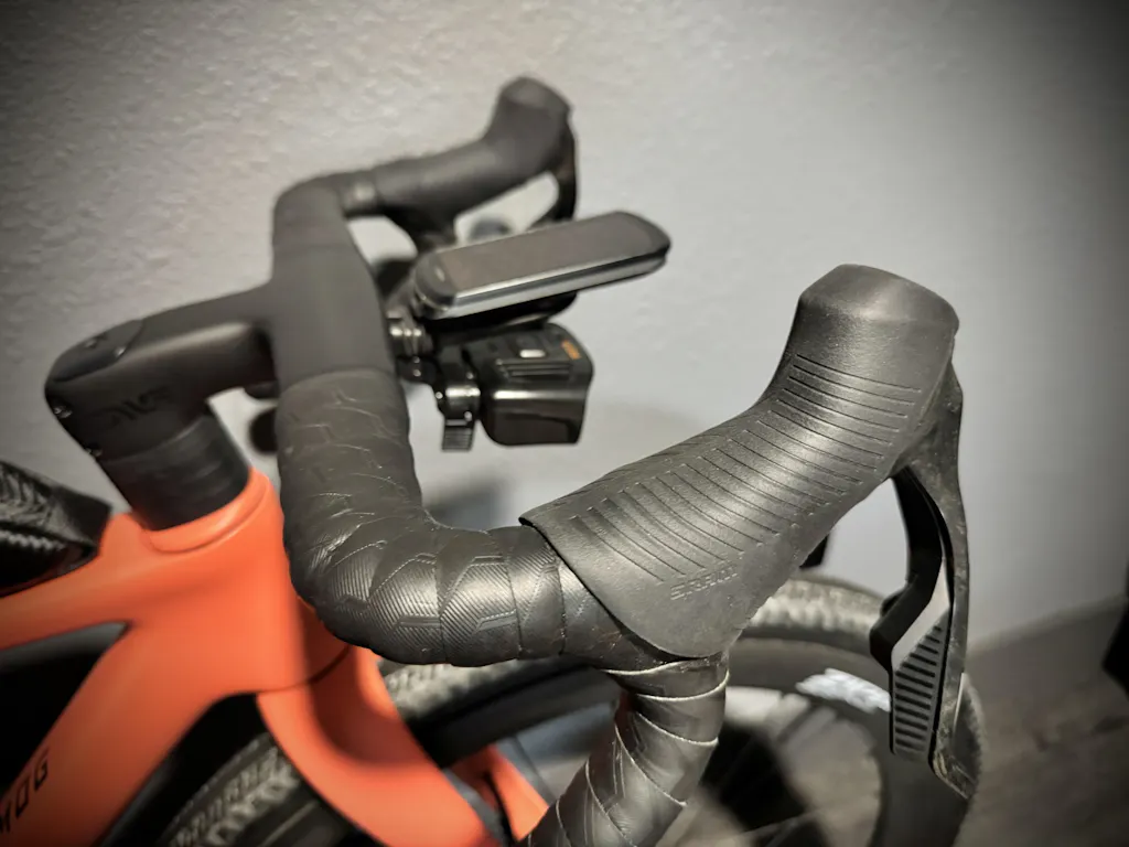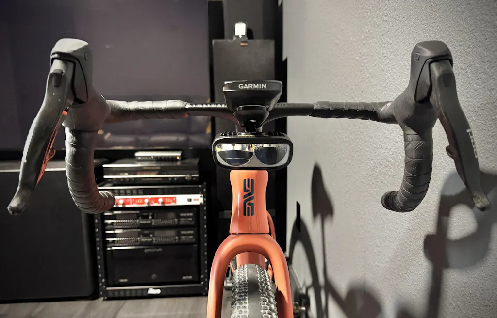 Gravel bike rider with a Detour on the handlebarsGravel bike rider with a Detour on the handlebars