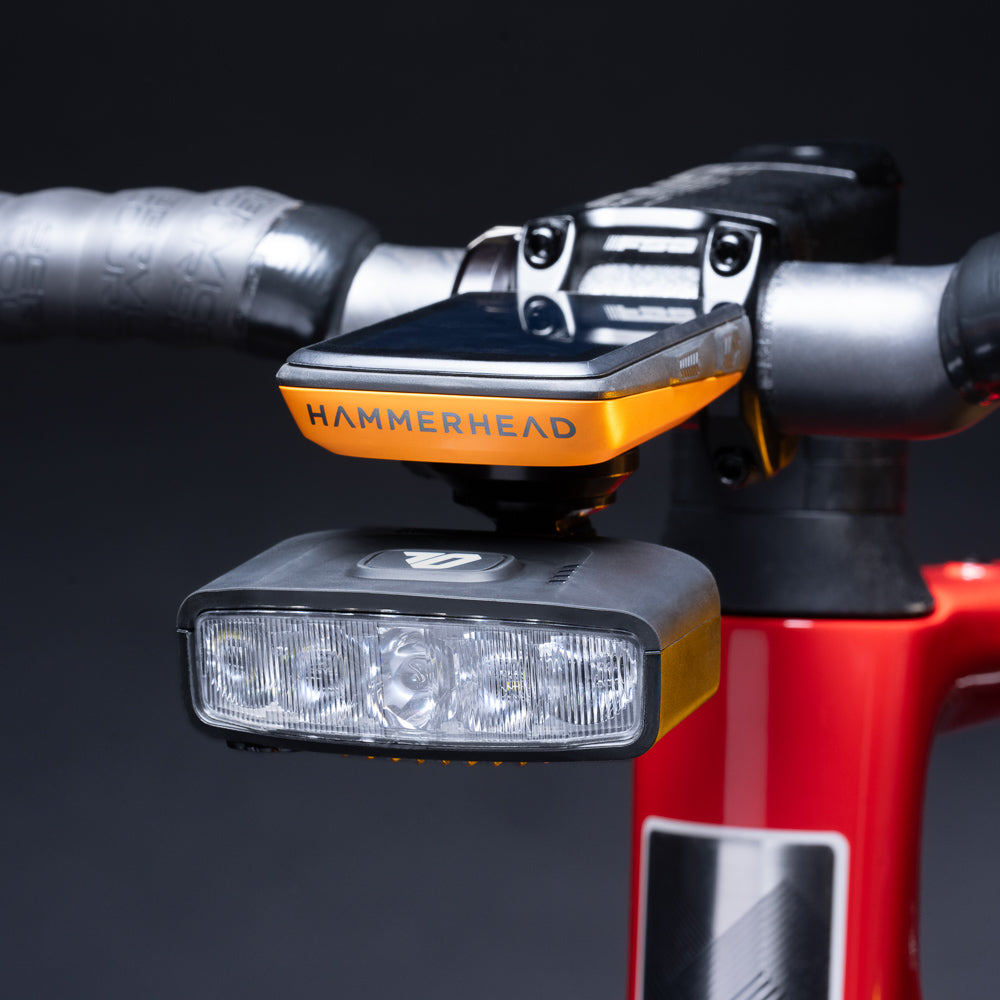 So many of you wanted to be able to mount our lights underneath your bike computers that we created this nifty little adapter. All the guts of our Quick Release Handlebar Mount that comes with Detour and Evo, but to work with an Action Camera mount.